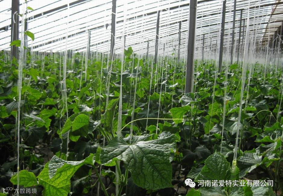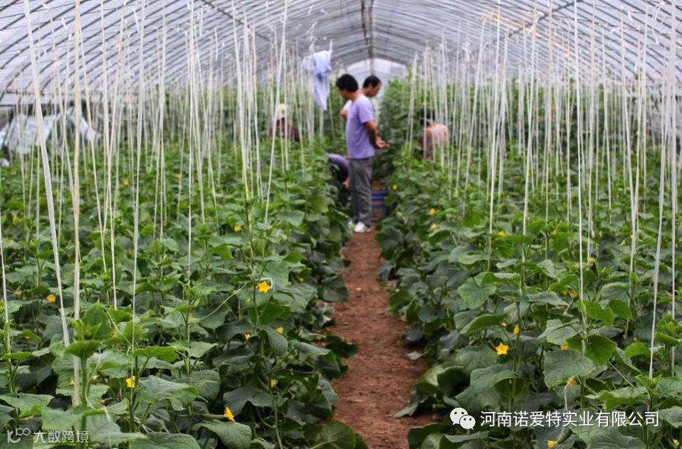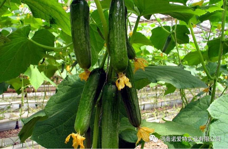 6.喷施稀土。幼苗期、始花期、幼瓜期,各喷施一次稀土微肥,提高叶片光合效率,增加抗病能力,控制苦味素产生,提高黄瓜含糖量1%~2%,使产量和质量得到明显提高。据试验,喷施3次稀土微肥,可增产5%~6.8%。