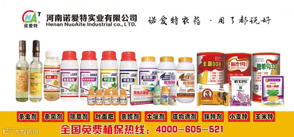 河南诺爱特实业有限公司,是一家致力于精细化产品研发、生产、营销、代理为一体的高新技术企业。秉承“诚信为根本,双赢为中心、客户为上帝”,勇于打造国内知名环保型农药品牌,竭诚希望与您携手共进,共创辉煌。