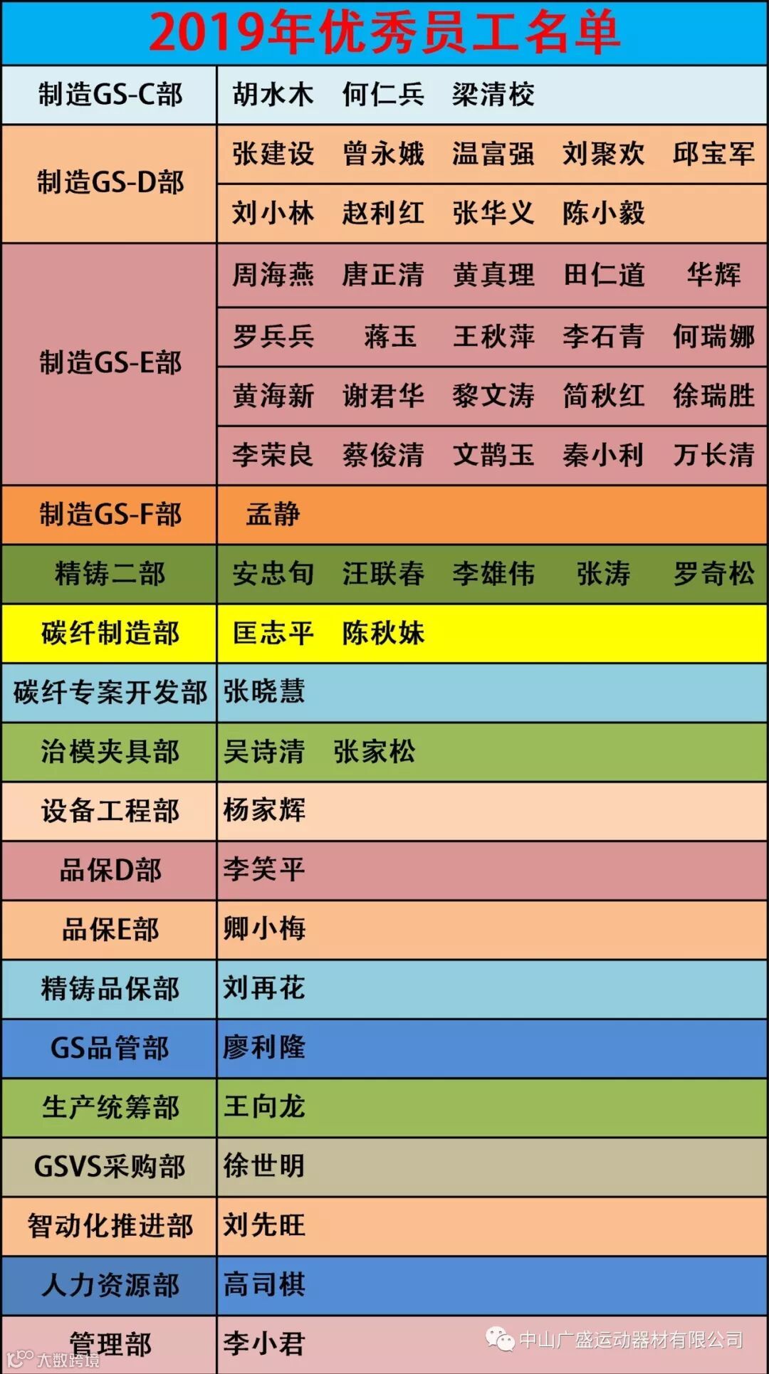 2019年度广盛公司优秀员工