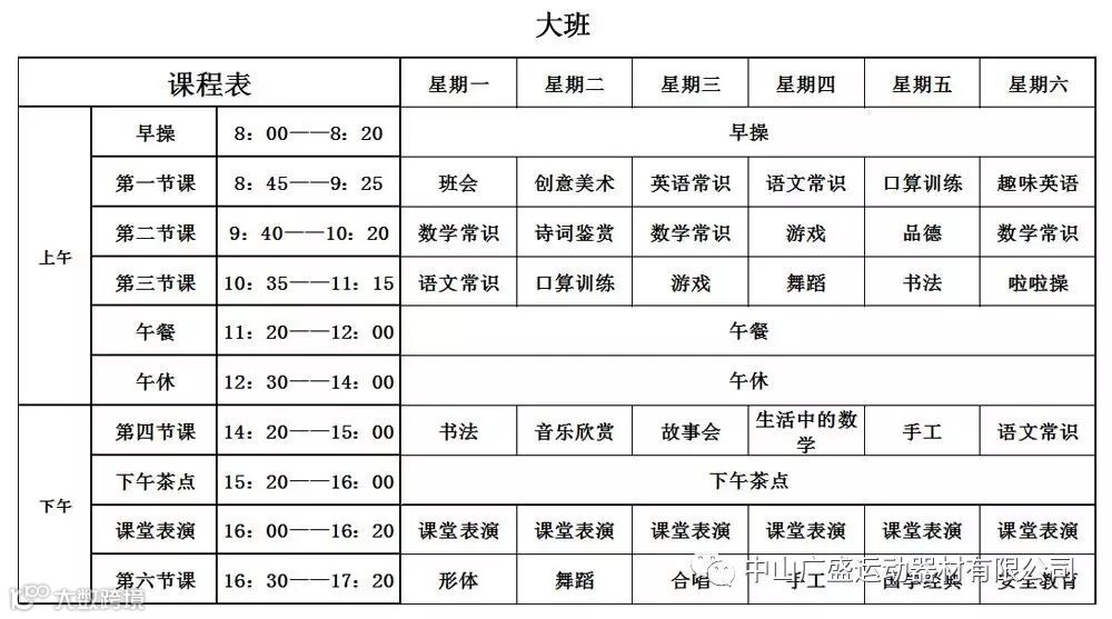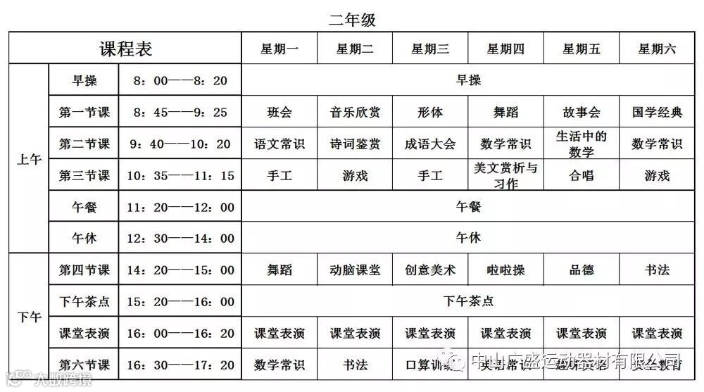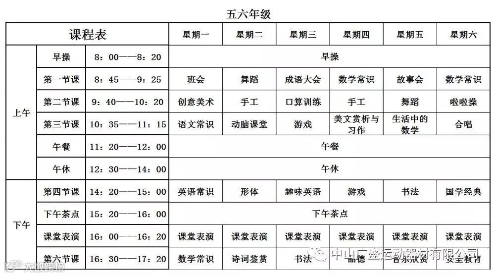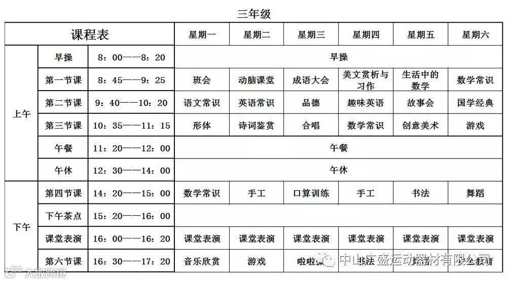 我们的课程表: