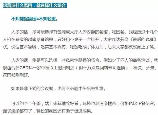 话说回来,川菜、湘菜虽美味,但适合彼此熟悉、又同是无辣不欢的哥们把酒言欢。若是彼此不熟的商务宴请,还是选择粤菜、江浙菜等安全牌。