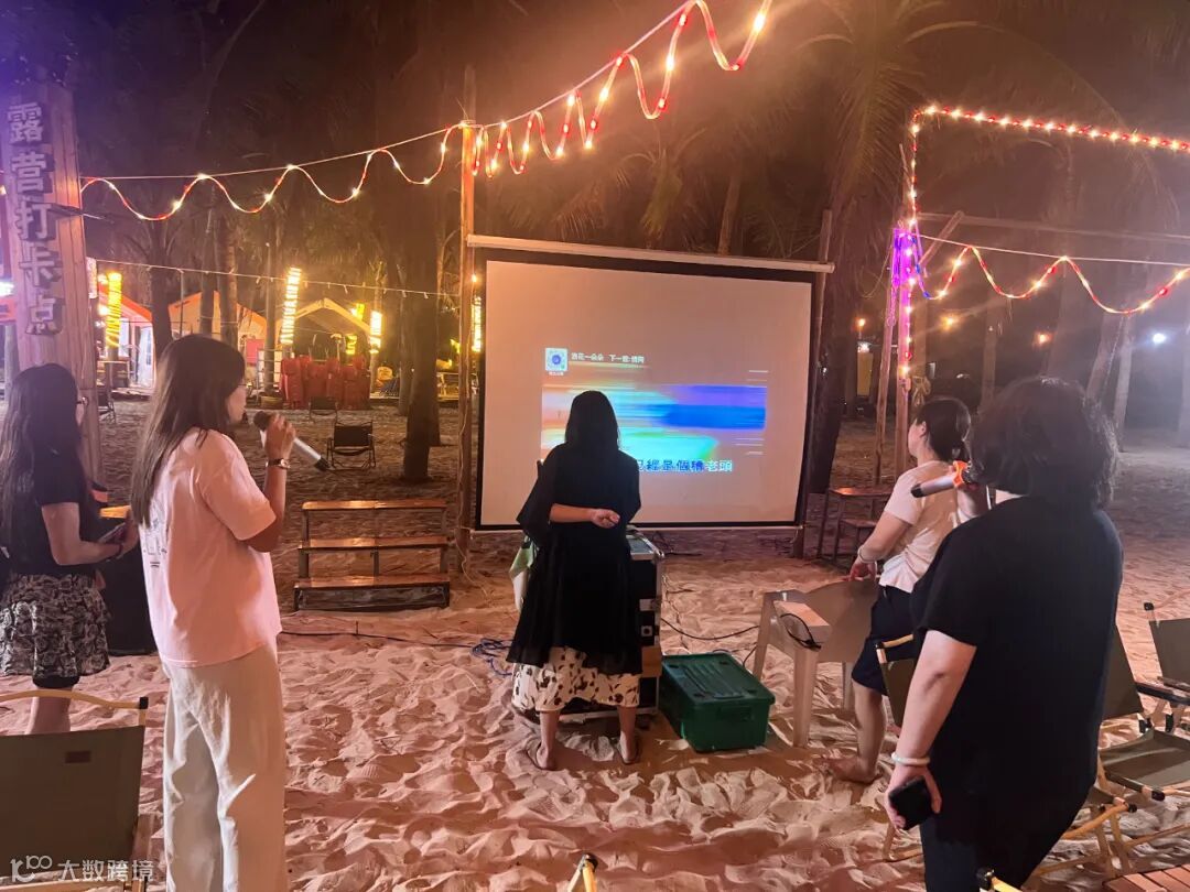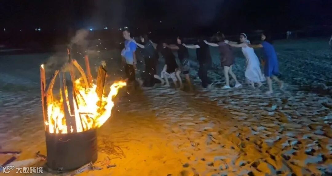 夜幕彻底笼罩沙滩时,堆好的篝火 “噼啪” 燃起,跳动的火光瞬间照亮周围的笑脸。大家手搭着前面小伙伴的肩膀慢慢小跑起来,热闹又温馨的气息。跑累了,沙滩K歌便正式开启。设备里传来经典老歌的旋律,有的三五成群围坐聊起日常工作里的趣事,你一言我一语中慢慢拉近了距离。海风裹挟着欢笑声、歌声飘向远方,平日里因工作忙碌而少有的交流,在这场篝火晚会中悄然增多。