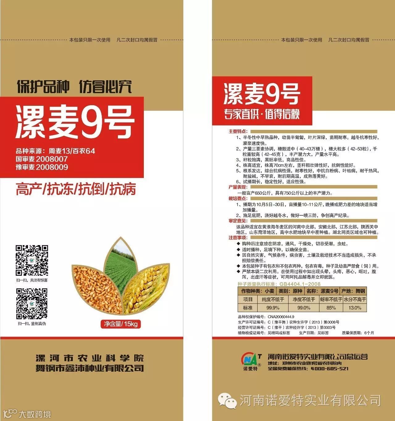 河南诺爱特实业有限公司2016年小麦种子供应正式开始,现供应国审漯麦9号,国审豫农035,国审豫麦70,另外供应:百农207.百农418.百农AK58.中麦1123.中麦9302.西农979.西农9023等品种,货款预收中……优惠多多……