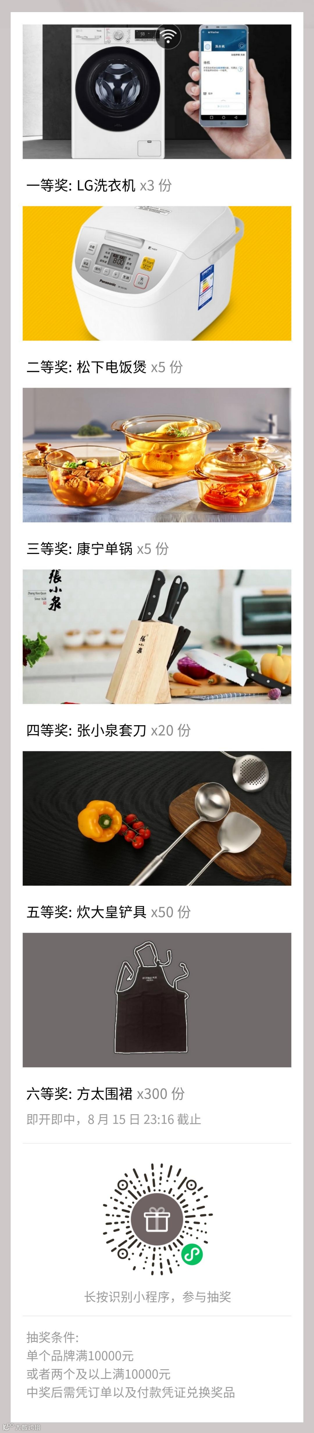 奖品LG洗衣机型号:FY11WX4 松下电饭煲型号:SR-DG153 1.5升