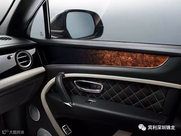 渐变色胡桃木饰面(Ombré Burr Walnut)是添越BentaygaMulliner特别版车型的专属配置。在座舱内,Mulliner定制部门还根据实木饰面的纹理和色泽对其进行精心排列和拼接,营造出天然实木从黑色渐变至胡桃木(Burr Walnut)的车内美图。与此同时,独特的饰面镶板中控台仪表板,取代了之前的标准面板。