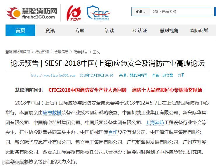 2018年中国(上海)国际应急安全与消防博览会聚焦国内外应急安全和消防两大核心领域,依托展会平台作用,促进国内外行业内的交流和合作,共享新技术、新理念、新信息,着力推进原始创新、集成创新,促进科技成果产品化、产业化;培育市场需求,推进应急产品在重点领域应用,并将前沿科技理念植入现实火灾预防、安全生产和应急救援管理工作,提升公众消防安全素质和社会防灾减灾救灾的综合实力,助力构建平安和谐社会。