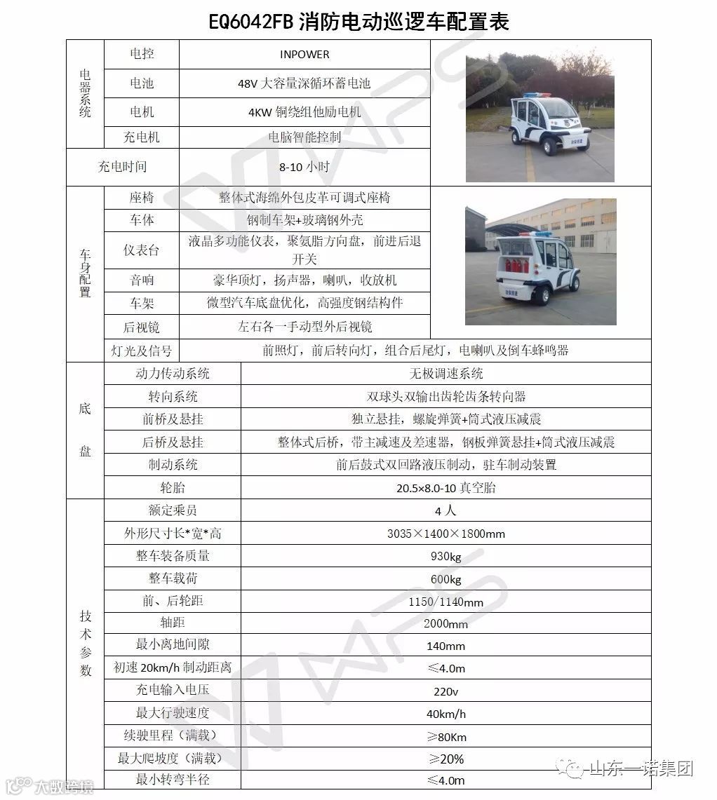 此款车型可搭载水箱或消防泵。驱动方式为直流电机驱动,不需加油,随车可选配消防斧、消防锤、消防钳、及2套干粉灭火器等灭火工具。