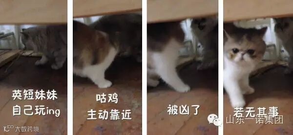 英短都震惊了,它肯定是没见过这样毫无底限的神经猫,感到这不科学。(其实这只英短妹妹从小战斗经验十分丰富,经常欺负窝里的同胞,抢奶也永远第一,所以长得格外大只,虽年龄小,但体型比咕宝大了一圈。)