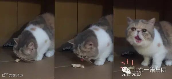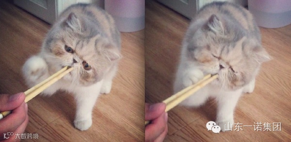 ……孩纸吃猫粮时倒是会咬的,可能心里觉得硬硬的东西就可以咬吧。不过因为脸扁在盆里吃起来也是有点笨笨的,于是喜欢用爪把猫粮扒出来吃,或者主人用筷子喂着吃: