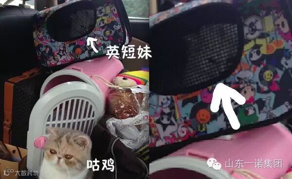 想想那只英短智商应该是蛮高,年纪小小就充满心机,运动能力也强,成天上窜下跳,好动得不行,开车的时候只能把它关进笼子;而咕宝由于异常乖巧安静就没有被关。当时的情形大概是这样的: