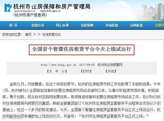 全国首个智慧住房租赁监管服务平台——杭州市住房租赁监管服务平台就宣告上线运行!