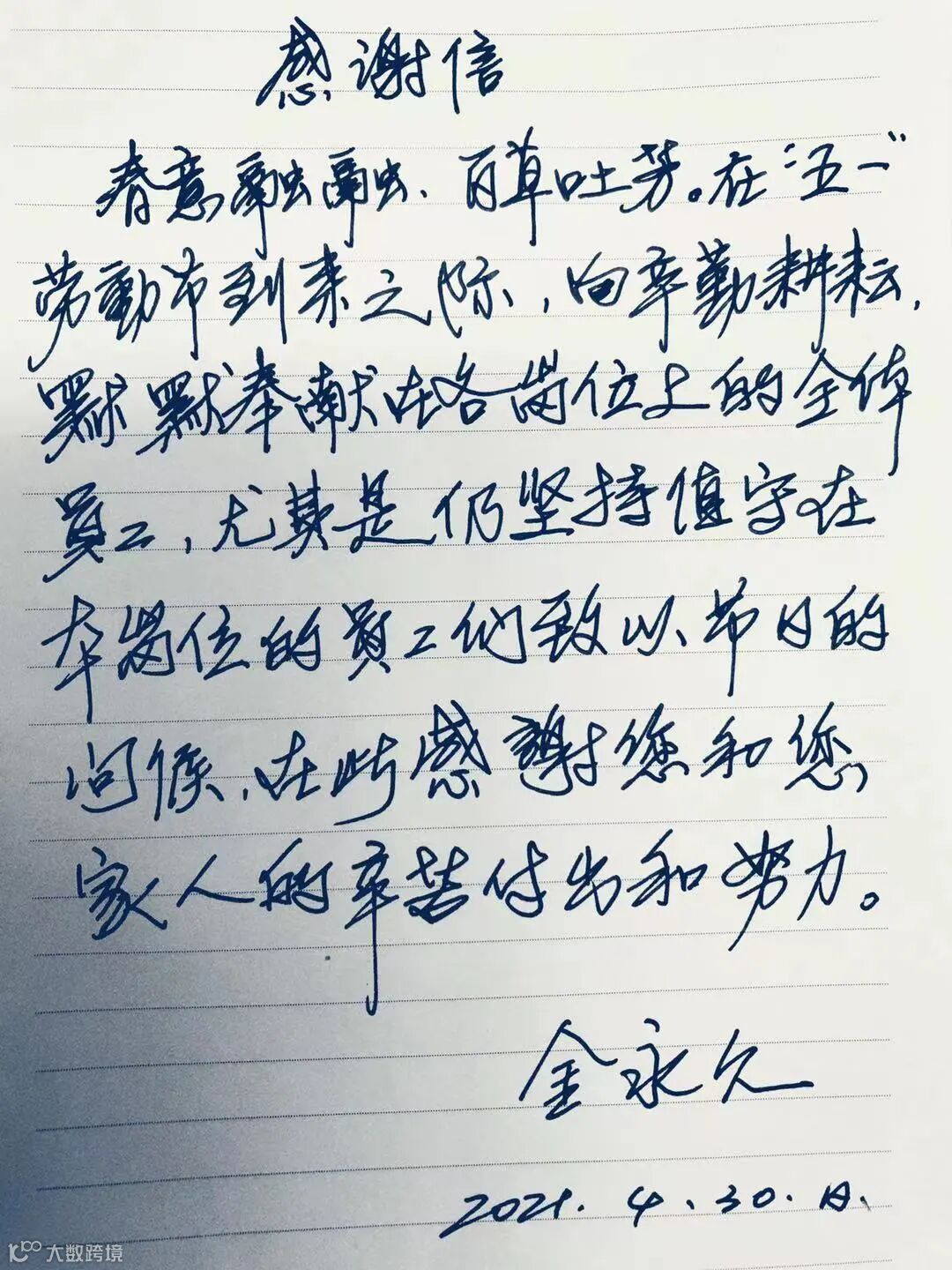 春意融融,百草吐芳。在“五一”劳动节到来之际,向辛勤耕耘,默默奉献在各岗位上的全体员工尤其是假期仍坚持值守在本岗位的员工们致以节日的问候,感谢您和您家人的辛苦付出和努力。