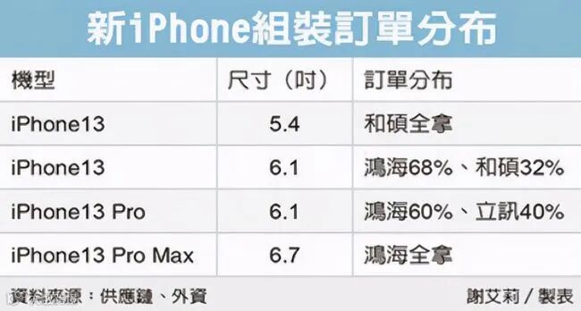 而富士康将负责iPhone 13 ProMax 全部订单、68% 的 iPhone 13订单 、60%的 iPhone 13Pro订单也都被富士康拿下。