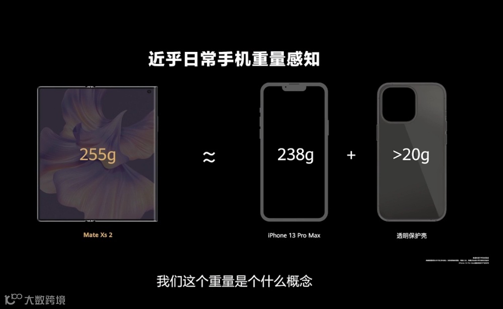 华为Mate Xs 2这次采用了业内罕见的外折方案,只有一块屏幕,有效缩减机身厚度,再加上大量的创新材料应用,使得重量得到大幅缩减,只有255g,与普通旗舰重量基本相当,创下了折叠屏最轻重量记录。