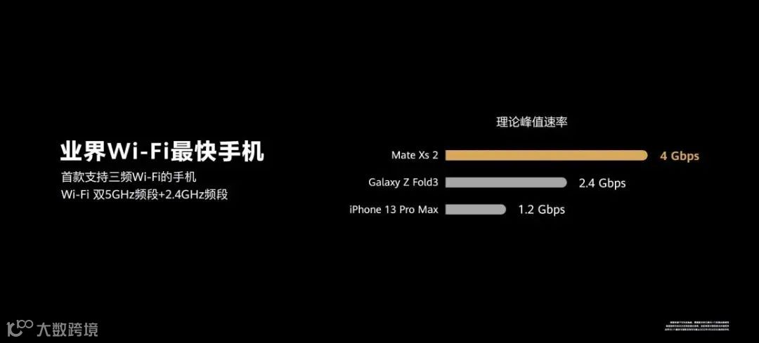 而且华为Mate Xs 2是业界首款支持三频Wi-Fi的手机,理论峰值速率高达4Gbps。