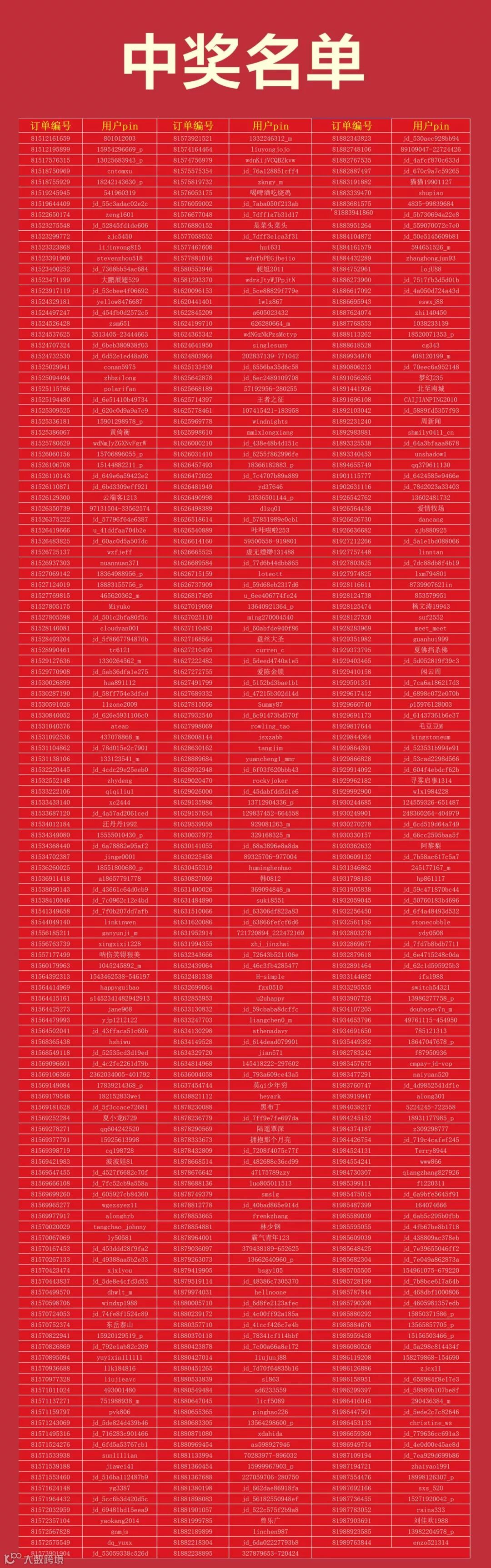 双十一免单获奖名单,具体名单如下: