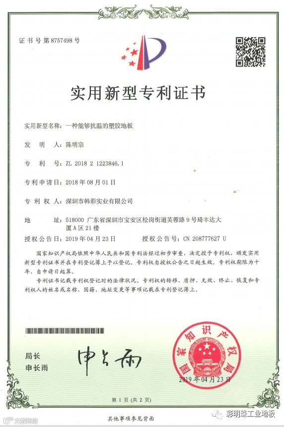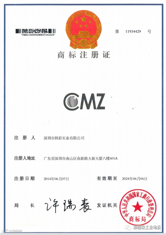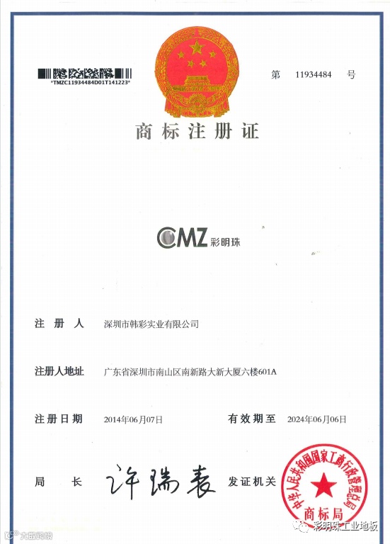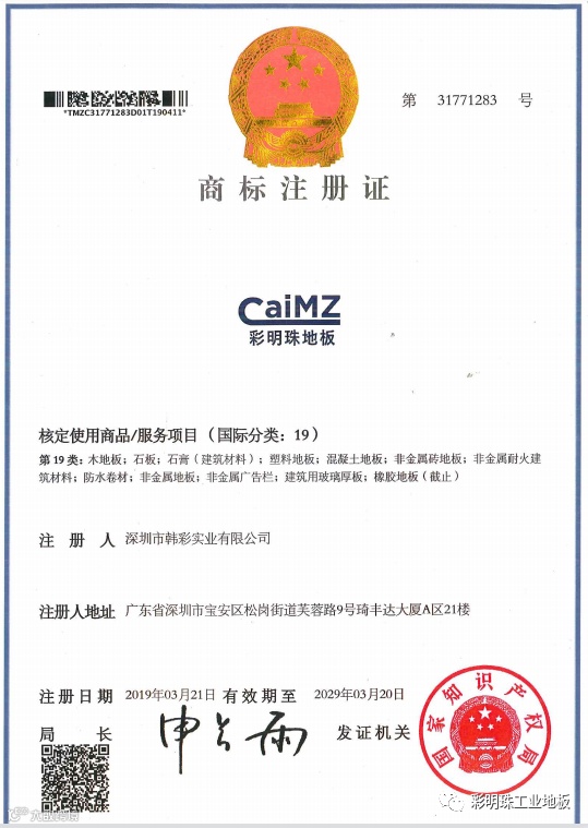 深圳市韩彩实业有限公司(www.hicofloor.com)(自主品牌:彩明珠。服务国际品牌:瑞士西卡、立邦、 韩国现代。服务国内品牌:华静)。创建于2004年,是一家专业从事地面材料的专业生产服务商,致力于为建筑和工业制造提供地面领先解决方案。其控股:广东彩明珠科技有限公司、深圳市夯实洁净工业有限公司、上海朴彬新材料科技有限公司。