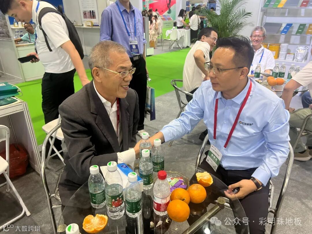 广东省地坪行业协会吴会长亲临现场,拜访我司指导工作,并与我司董事长陈明宗先生、总经理黄通云先生亲密交谈,祝彩明珠参展圆满成功,订单多多,钞票多多!