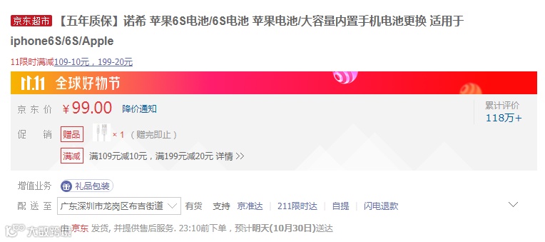 额外赠送数据线,再加满109元减10元,满199元减20元。