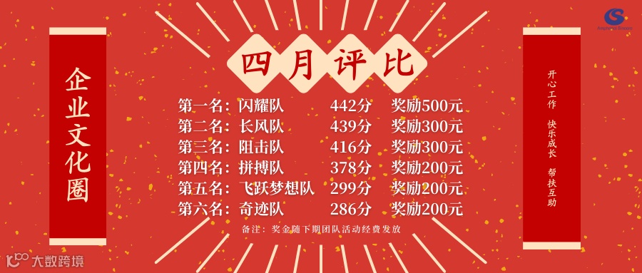 同时,公布4月公司级活动奖励情况: