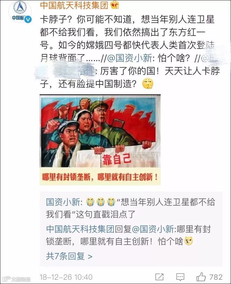 @中国航天科技集团:你可能不知道,当年别人连卫星都不给我们看。但是现在,你看看嫦娥四号?
