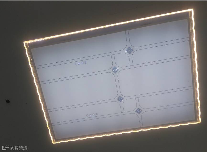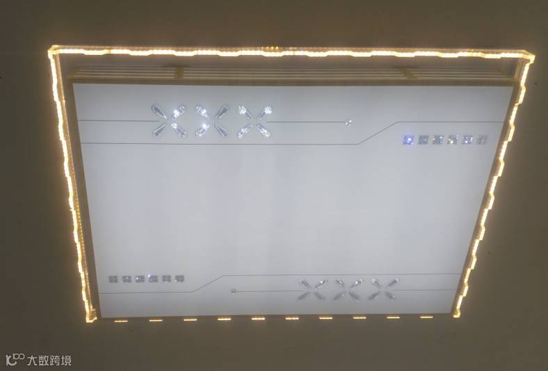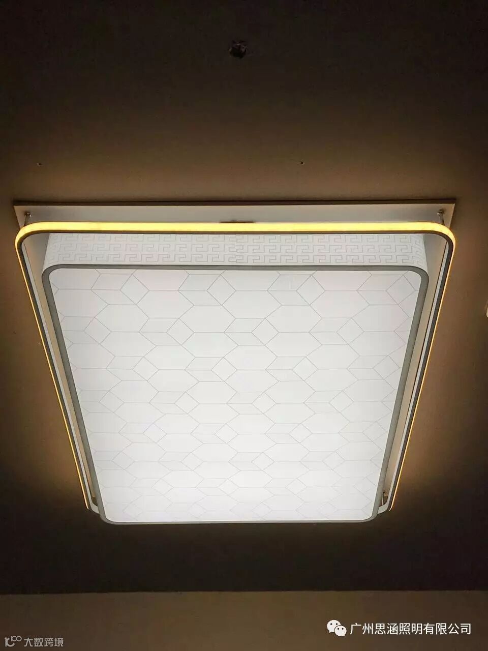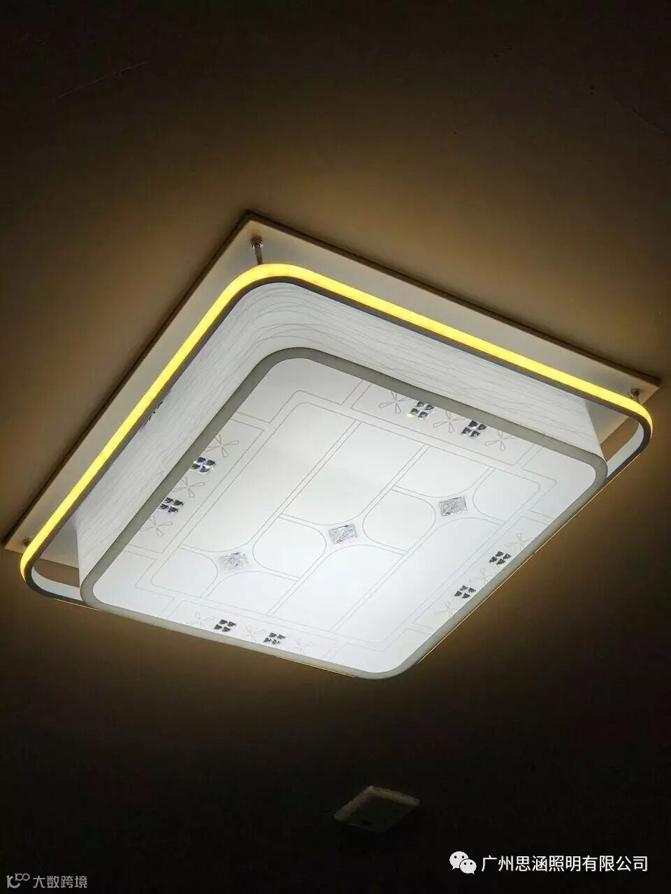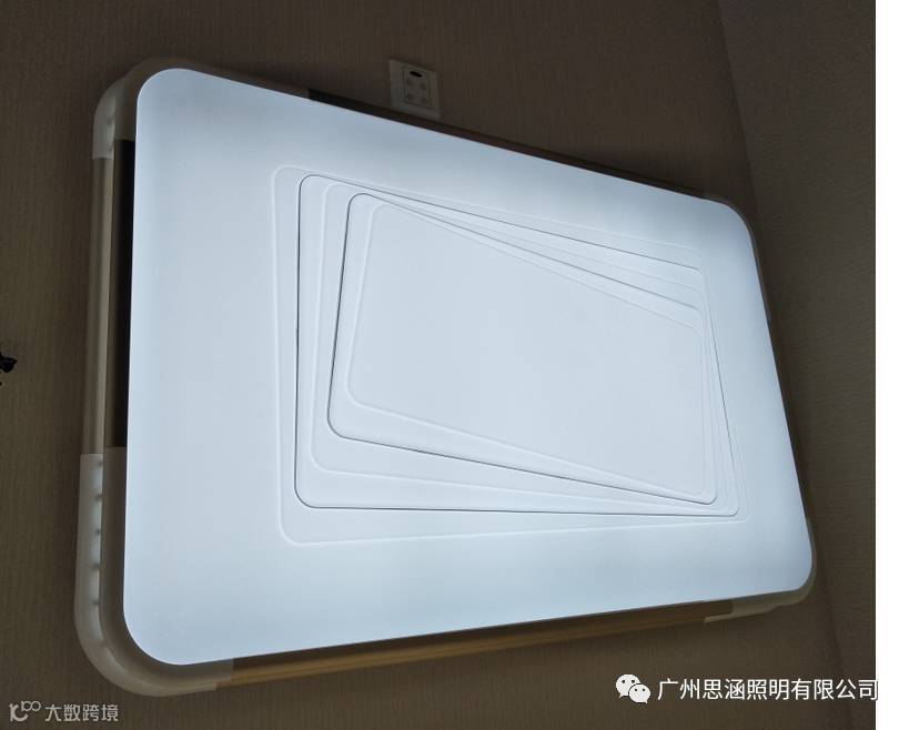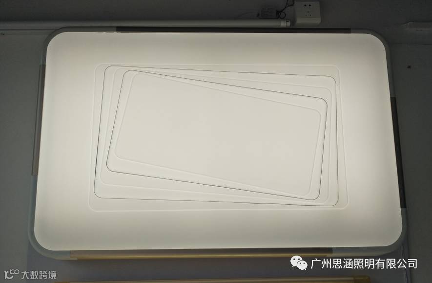 这款尺寸是:980*690mm,边框有白色和黄色两种可选。灯罩纯粹素净,无任何花色,在四周有三条装饰性的白边,灯罩材料为亚克力,一体成型,无粘接可脱落的装饰小部件。光源配置为单色80W,双色160W,三安芯片5730超亮灯珠,恒流双路输出高质量驱动电源。