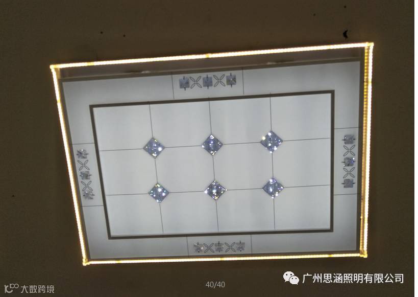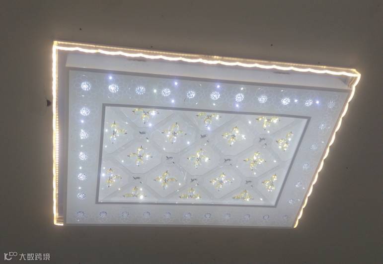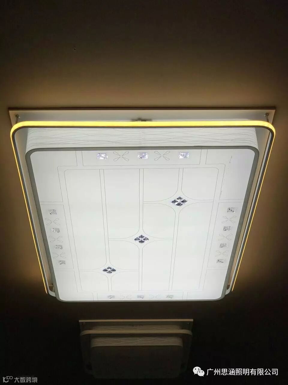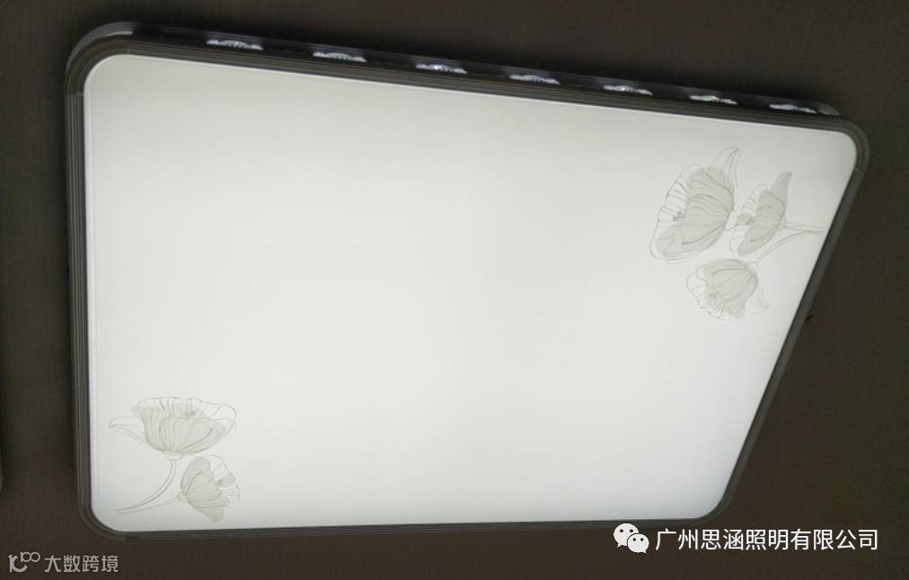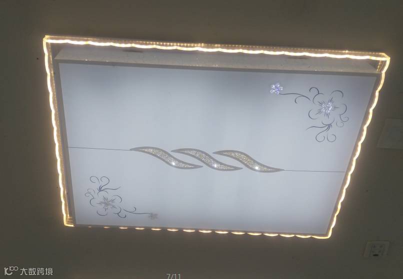 这款的尺寸是960*650mm,灯罩纯粹素净,无任何花色,在一个对角有三株二株荷叶,灯罩材料为亚克力,一体成型,无粘接可脱落的装饰小部件。光源配置为单色80W,双色160W,三安芯片5730超亮灯珠,恒流双路输出高质量驱动电源。