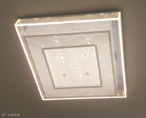 这款方形吸顶灯的特点是尺寸大,达到1200mm*750mm,适合30-50方的较大的长方形的客厅。素雅大方,无花色,在正面有四张像叠起来的扑克牌的造型,灯罩材料为亚克力,一体成型,无粘接可脱落的装饰小部件。光源配置为单色96W,双色192W,三安芯片5730超亮灯珠,恒流双路输出高质量驱动电源。