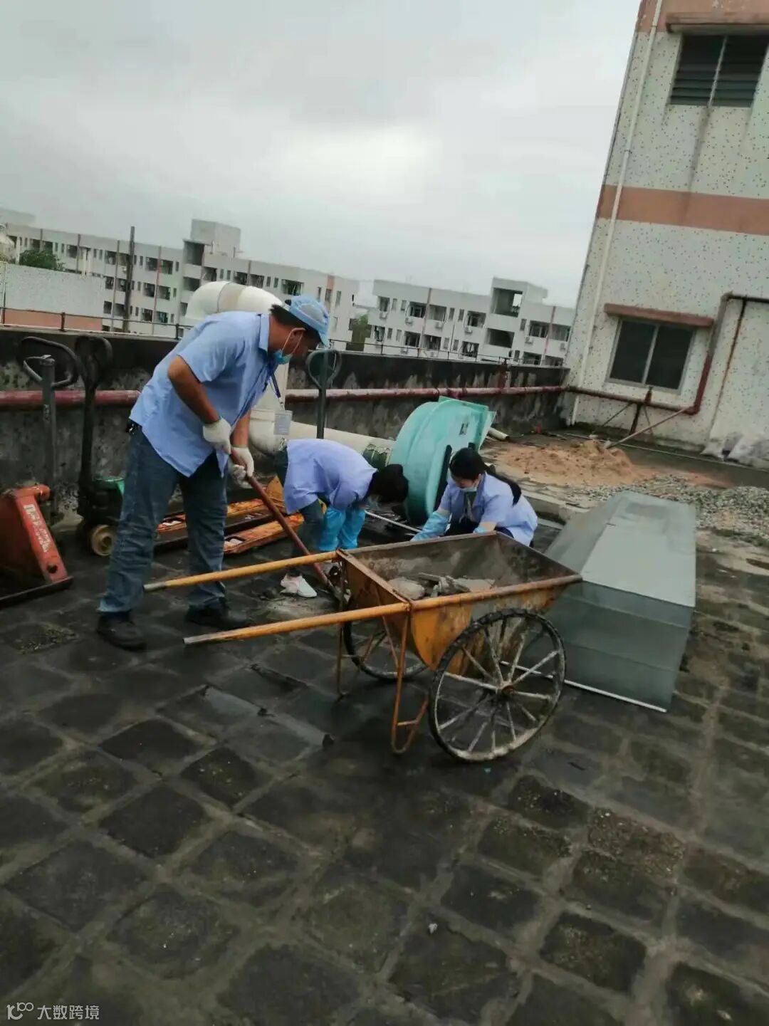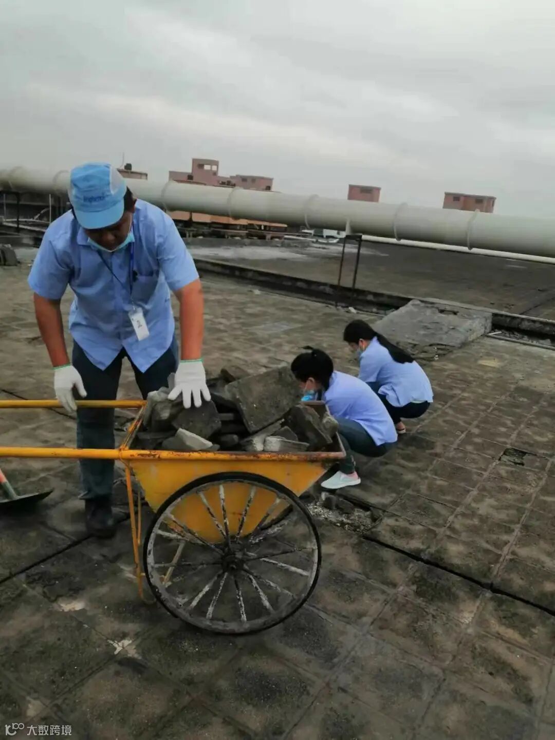 公司楼顶经过日晒雨淋,部分地砖已老化脱落,义工们一车又一车地运送、一砖一瓦地铺砌,经过三次修复,终于让楼顶焕然一新。