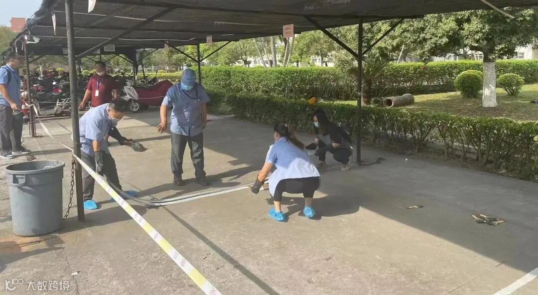 为规范车辆停放,炎炎烈日下,义工们正为停车位划线。一条条白线整齐划一,格外显眼,确保司机有序停放。