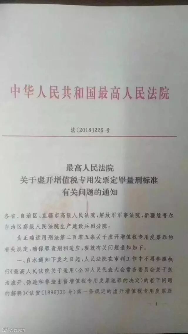 2018年8月22日 ,最高人民法院发布了关于虚开增值税专用发票定罪量刑标准有关问题的通知。(下文有文字版)
