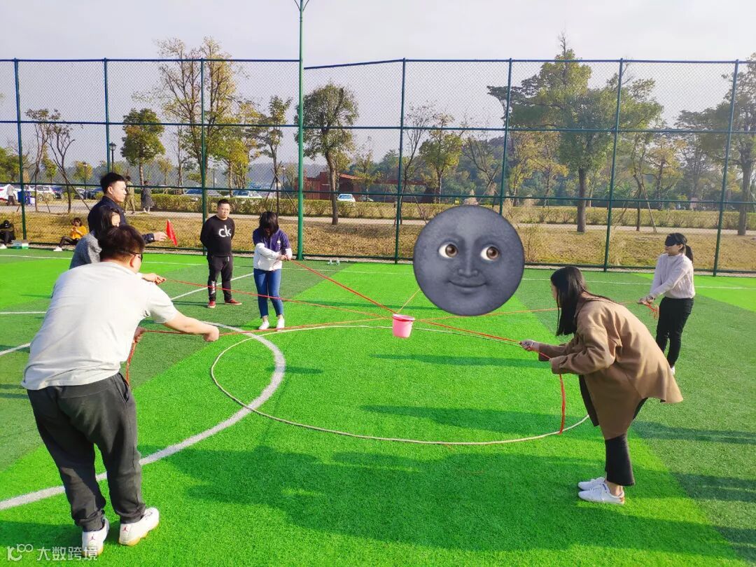 几名成员蒙眼移动水桶,