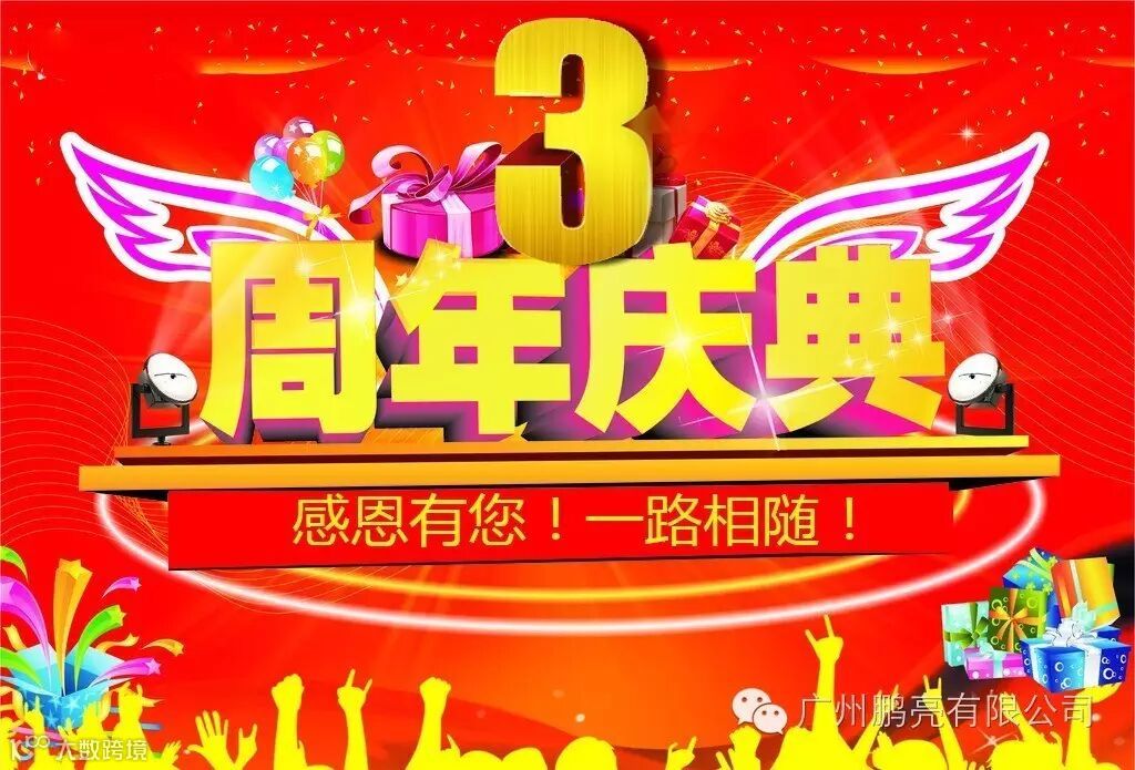 您们好!广州市鹏亮商贸有限公司已经成立3周年啦!! ! 三年里成长的蜕变,变的是时间,不变的是我们坚持“诚信经营,品质取胜”的经营理念。遵循以