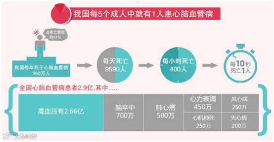 心脑血管疾病是心脏血管和脑血管疾病的统称,泛指由于高脂血症、血液黏稠、动脉粥样硬化、高血压等所导致的心脏、大脑及全身组织发生的缺血性或出血性疾病。心脑血管疾病是一种严重威胁人类,特别是50岁以上中老年人健康的常见病,具有高患病率、高致残率和高死亡率的特点,即使应用最先进、完善的治疗手段,仍可有50%以上的脑血管意外幸存者生活不能完全自理,全世界每年死于心脑血管疾病的人数高达1500万人,居各种死因首位。随着人民生活水平的提高,我国正在逐步进入老龄化社会,心脑血管疾病的发病率已经呈现显著提高的趋势,因此,心脑血管疾病的治疗和预防成为医疗卫生工作的重点之一。