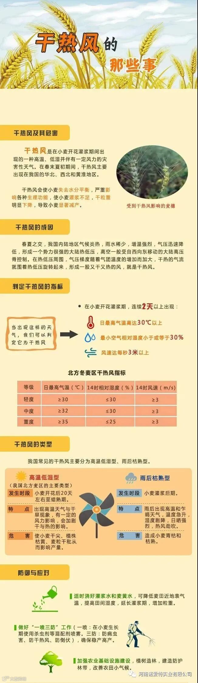 小麦干热风是小麦生育后期经常遇到的气象生理病害,也是让农民朋友最头痛的一种病害,根据以上预防措施,结合当地小麦生长及气象条件,才能有效预防小麦干热风,保证小麦稳产高产!