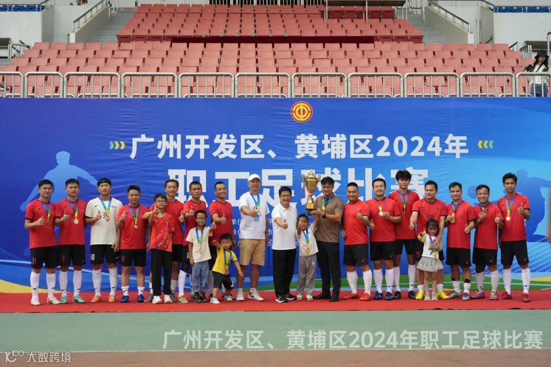 2024年10月27日,由广州开发区总工会、广州市黄埔区总工会主办的2024年职工足球比赛在黄埔区体育中心足球场圆满落幕。本次比赛共吸引了27家基层工会(企业组)的足球队伍参与,经过7场激烈而精彩的角逐,恒运集团足球队凭借团结拼搏的精神和出色的表现,成功夺得冠军。集团总经理助理、恒城服公司董事长王明强、恒城服公司总经理符海涛带队参赛。恒运集团副总经理斯海胜,总经理助理、综合管理部负责人朱彦亲临决赛现场,为恒运集团足球队员们加油助威。