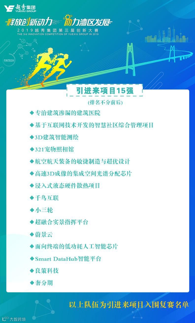 越秀集团第三届创新大赛“引进来”项目涵盖了四大主题:商住并举、金融科技、智慧交通以及智能制造。本届创新大赛共征集到63个“引进来”项目参加海选,为保证这些“引进来”项目能够与集团产业密切契合,对“引进来”项目的海选评审,集团特意邀请下属的地产、金控、交通及广纸四个产业板块参与评审及推荐,联合各板块对项目展示材料进行综合参评,并最终选出15个“引进来”项目晋级复赛。