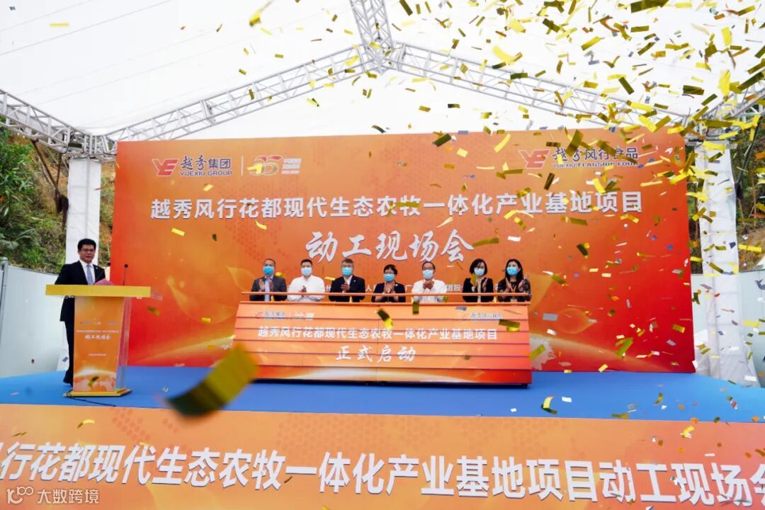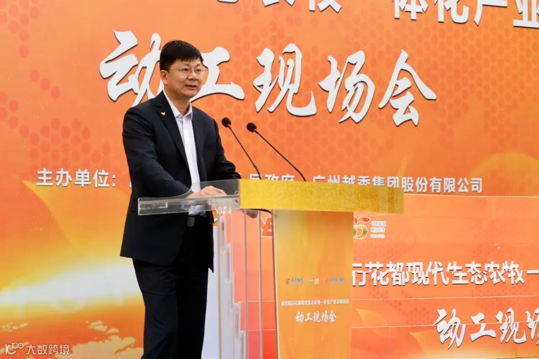 3月25日上午,广州越秀风行花都现代生态农牧一体化产业基地项目开工仪式在花都狮岭军田村举行。广州市副市长黎明,花都区委书记黄伟林、区长邢翔,市国资委总经济师罗俊茯,市农业农村局总畜牧兽医师彭聪,越秀集团党委书记、董事长张招兴,总经理叶珊瑚,广西扬翔总裁施亮,以及花都区有关职能部门领导出席仪式。