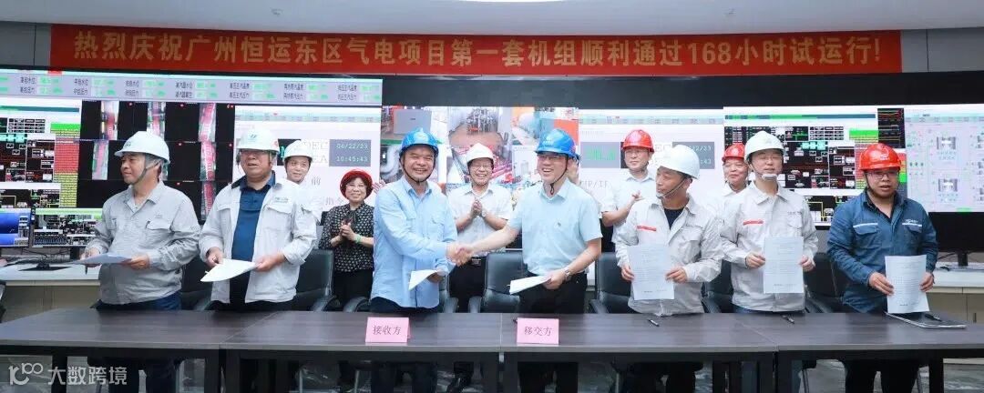 168小时试运行并正式移交商业运营。恒运集团党委副书记、总经理周水良,副总经理王艳军,中能建广东院副总经理黄志远,中能建建筑集团常务副总经理汪公河,