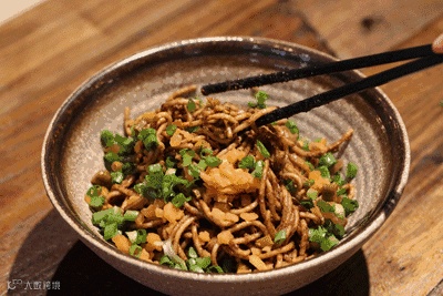 以油、盐、芝麻酱、色拉油、香油、细香葱、大蒜子、卤水汁、生抽为辅助材料。其色泽黄而油润,香而鲜美,一口下去面条纤细爽滑有筋道、酱汁香浓味美,爽口的辣味涌上口腔,真是夏天必备呀!
