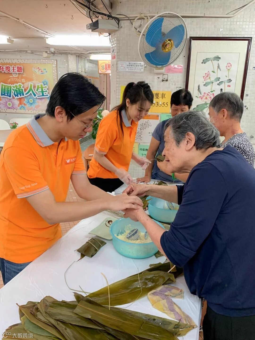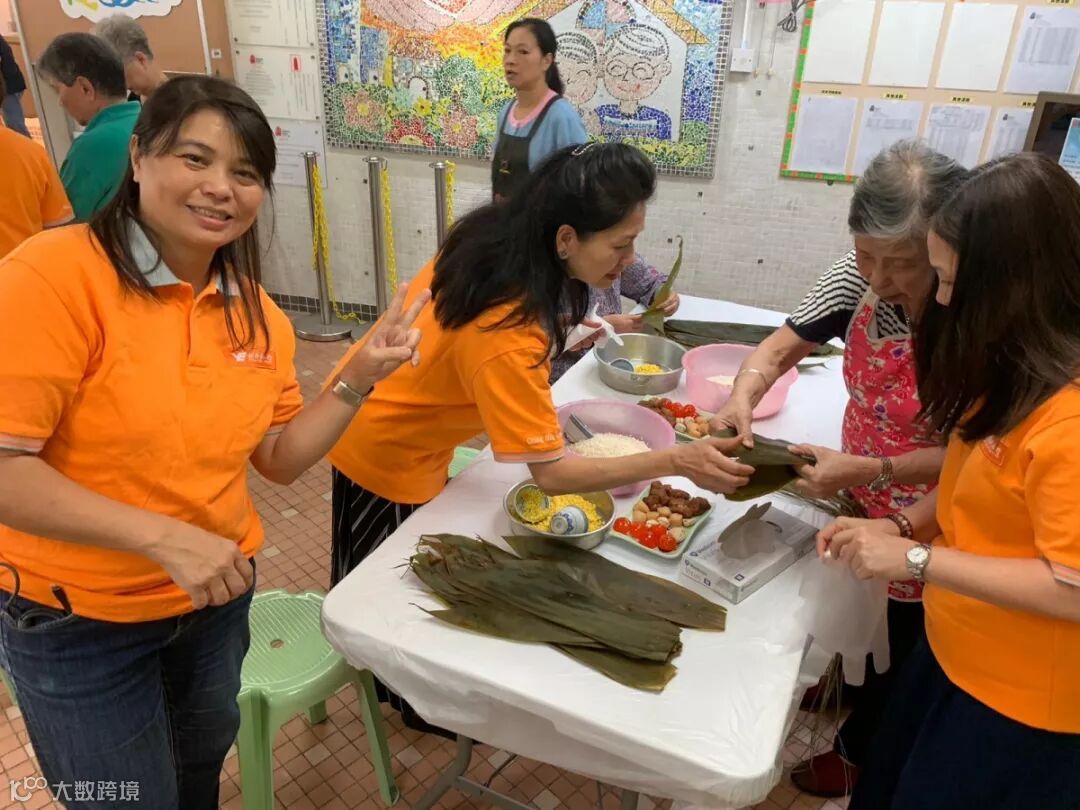 ▲创兴银行义工与长者们一起包粽子。