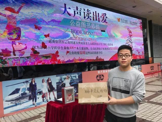 募捐之后,广州白马服装市场有限公司总经理助理、广州白马服装商会秘书长陈宝洪代表广州白马服装商会向越秀集团云南鲁甸支教行动捐赠善款1万元以认购图书,并组织募捐人员一起为越秀公益喝彩。