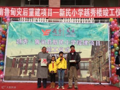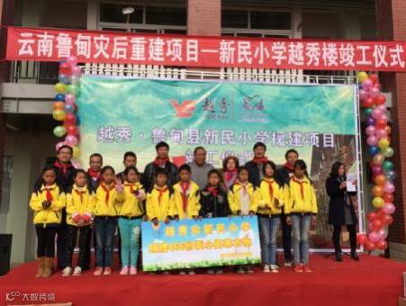 地震发生后,越秀集团深入灾区实地考察,在了解到新民小学的具体情况后,向新民小学捐赠了350余万,建成了主教学楼,并命名为“越秀楼”,帮助446名孩子重返校园。