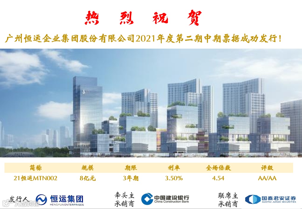 2021年8月17日,恒运集团2021年第二期中期票据成功发行,本次中票发行共募集资金8亿元,期限3年,发行利率3.5%,显著低于今年以来同评级债券的平均发行利率。