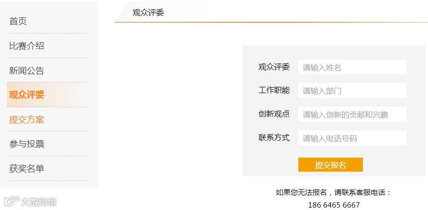 10月12日至10月23日,任何有意担任本次复赛观众评委的员工,可直接登陆创新大赛官网,点击“观众评委”栏目报名,创新大赛组委会将酌情选出30位员工作为观众评委,并于10月29日公布名单。