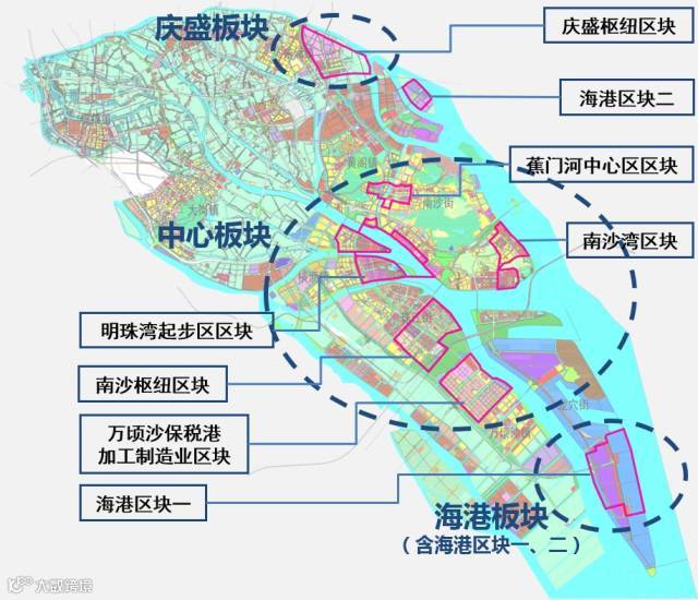 此图是南沙规划的核心,这七大片区的圈出,南沙发展有了重点,也有了明确的分工。