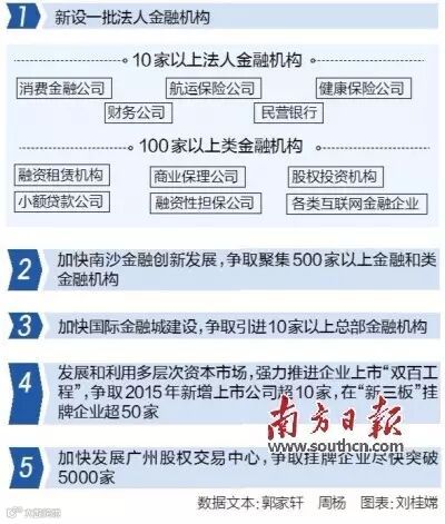同时,《实施方案》还从加强总部金融方面提出支持总部金融机构综合经营的方案。例如,要支持广发银行、广发证券、广发期货等行业领先企业在风险可控的前提下,以相互控股、参股方式探索综合经营,并进一步做大做强。支持官洲银行、广州农商银行、广州证券、万联证券等市属金融机构通过增资扩引进战略投资者、改制上市、兼并重组等方式实现跨越式发展。