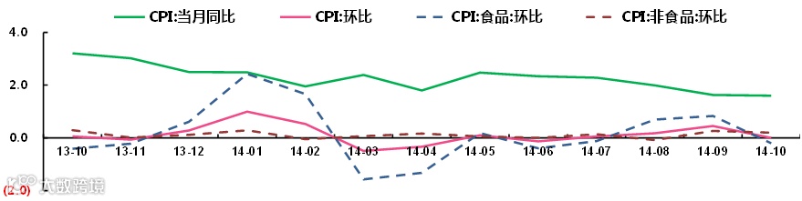 10月CPI同比上涨1.6%,涨幅与上月持平;PPI同比下跌2.2%,跌幅较上月扩大0.4个百分点,连续32个月下降。食品供给充裕减轻了食品价格上涨压力、国际原油价格下跌压制非食品价格上涨空间,CPI走势平稳;生产端去产能仍在持续,生产资料价格仍在探底