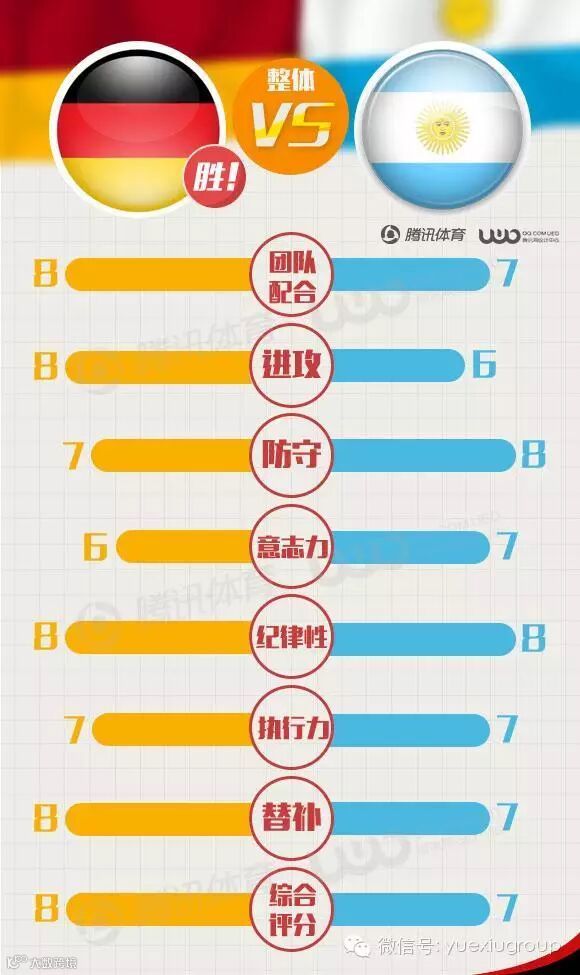 以传控足球为基础的德国队是本届世界杯表现最为出色、最为稳定的球队,也是进球最多的球队,晋级决赛实至名归。而拥有金球先生梅西的阿根廷战术更加保守,也凭借稳固的防守连胜瑞士、比利时和荷兰晋级决赛。以整体实力而言,德国稍稍领先于阿根廷!