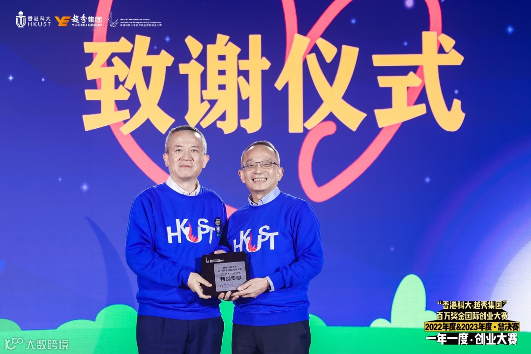 作为香港科大在大湾区最坚实的合作伙伴之一,越秀集团已经连续五年冠名了香港科大百万奖金创业大赛年度总决赛,为吸引科创人才落户广州、驻足南沙提供了机会和平台。本届大赛分别向越秀集团、香港科技大学颁发“特别感谢”纪念牌、 “特别贡献”纪念牌。